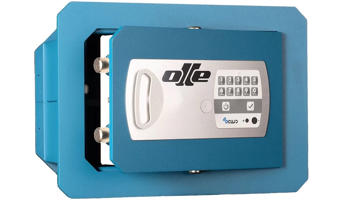 А вскрыть сейф через замок, не пытаясь пробить надёжно защищённую дверь, невозможно, так как на двери моделей OLLE 801E25 устанавливаются специальные электронные замки высокой секретности, механизм которых усиливает уникальная керамическая защита. При захлопывании двери замок срабатывает, активируя трёхстороннюю ригельную систему из четырёх мощных стальных цилиндров – ригелей, которые выдвигаются в пазы на корпусе, прочно блокируя дверь в случае попытки вырезать замок.